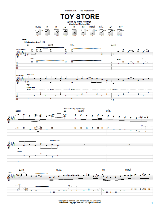 Download or print O.A.R. Toy Store sheet music, chords and digital score arranged for Guitar Tab. This Pop score includes 7 page(s).