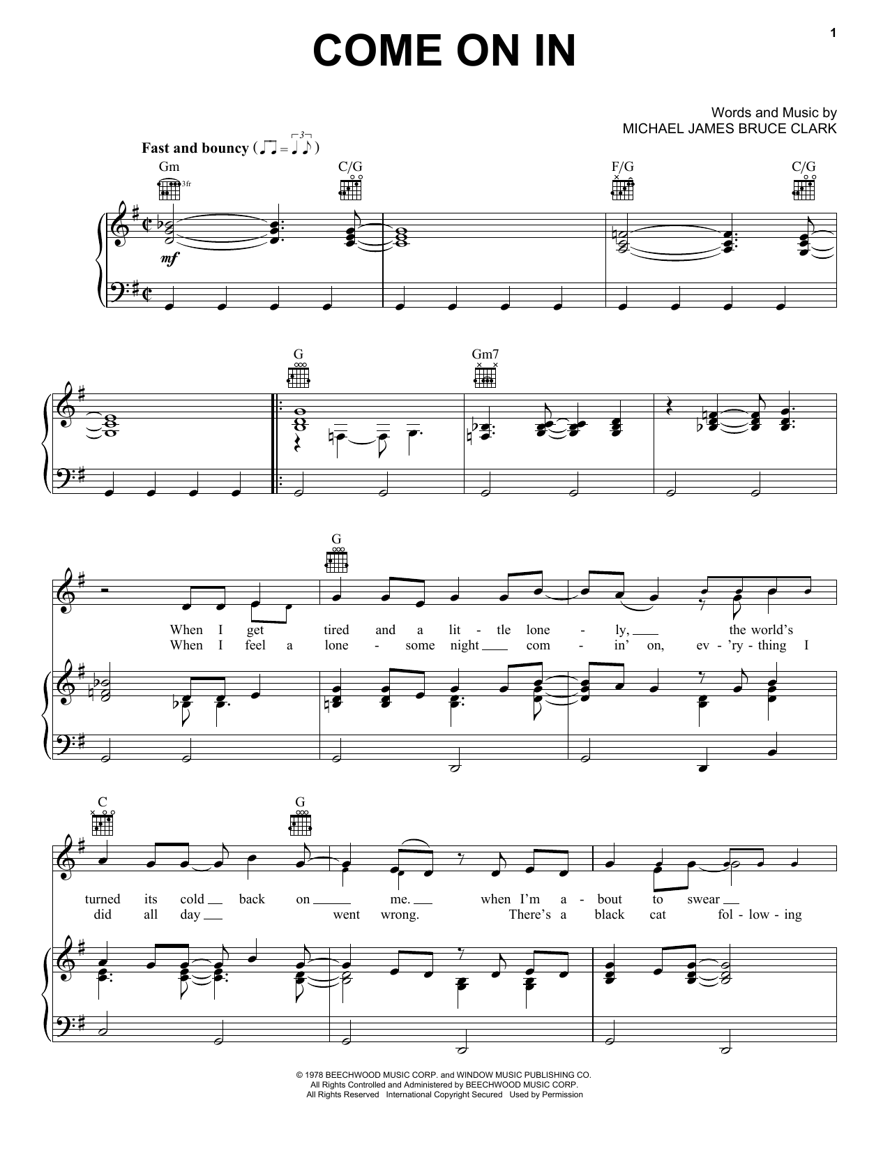 Download or print Oak Ridge Boys Come On In sheet music, chords and digital score arranged for Piano, Vocal & Guitar Chords (Right-Hand Melody). This Country score includes 4 page(s).