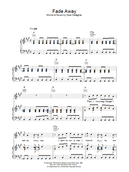 Download or print Oasis Fade Away sheet music, chords and digital score arranged for Guitar Tab. This Rock score includes 9 page(s).