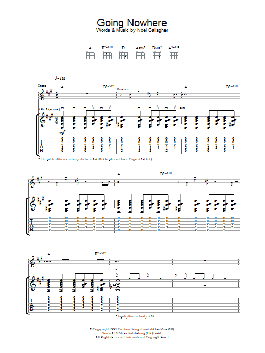 Download or print Oasis Going Nowhere sheet music, chords and digital score arranged for Piano, Vocal & Guitar Chords. This Rock score includes 6 page(s).