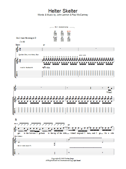 Download or print Oasis Helter Skelter sheet music, chords and digital score arranged for Guitar Chords/Lyrics. This Rock score includes 2 page(s).