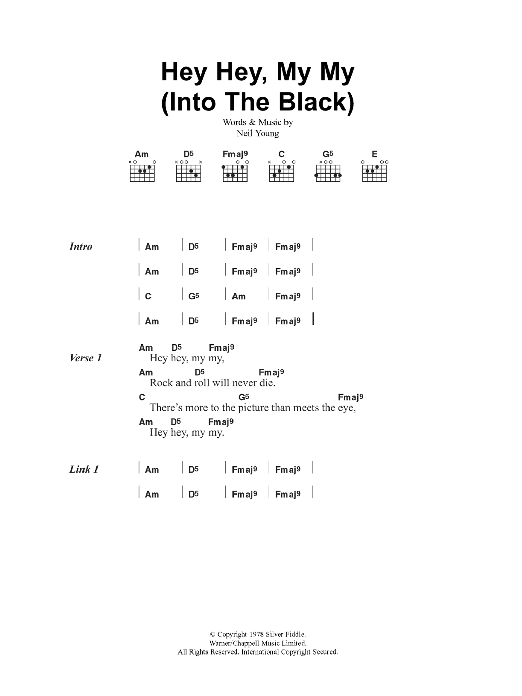 Quick facts Hey Hey, My My (Into The Black) about digital sheet music