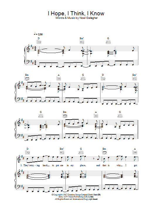 Download or print Oasis I Hope, I Think, I Know sheet music, chords and digital score arranged for Guitar Tab. This Pop score includes 9 page(s).