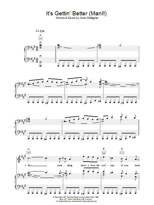 Download or print Oasis It's Gettin' Better (Man!!) sheet music, chords and digital score arranged for Guitar Chords/Lyrics. This Rock score includes 3 page(s).