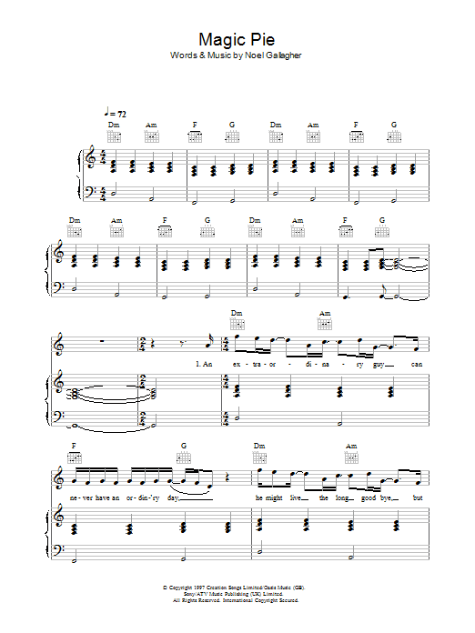 Download or print Oasis Magic Pie sheet music, chords and digital score arranged for Guitar Tab. This Pop score includes 8 page(s).