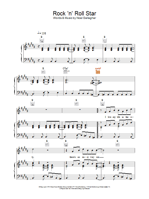 Download or print Oasis Rock 'n' Roll Star sheet music, chords and digital score arranged for Guitar Tab. This Rock score includes 11 page(s).