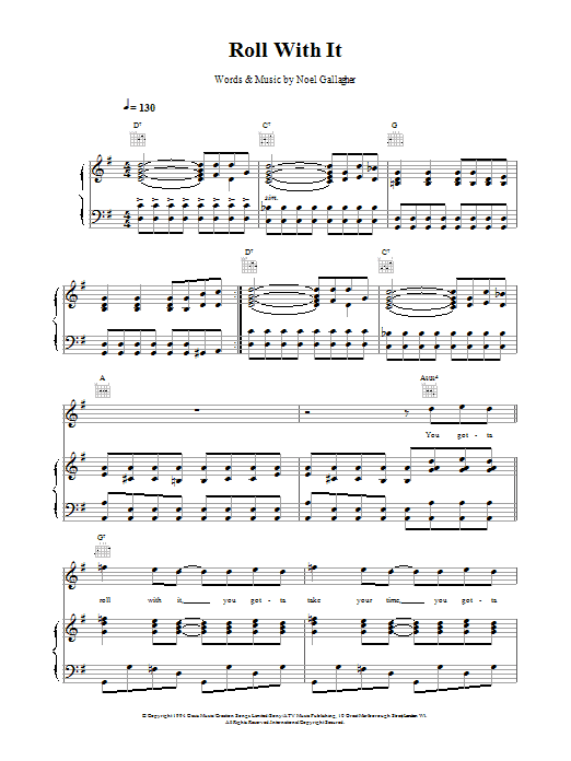 Download or print Oasis Roll With It sheet music, chords and digital score arranged for Guitar Chords/Lyrics. This Rock score includes 2 page(s).