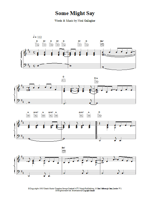 Download or print Oasis Some Might Say sheet music, chords and digital score arranged for Guitar Tab. This Rock score includes 7 page(s).