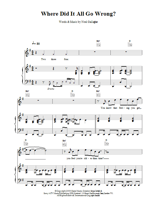 Download or print Oasis Where Did It All Go Wrong? sheet music, chords and digital score arranged for Guitar Chords/Lyrics. This Rock score includes 2 page(s).