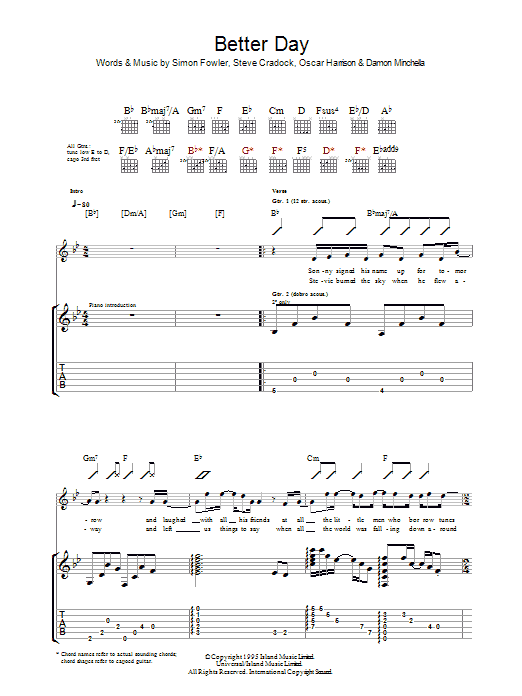 Download or print Ocean Colour Scene A Better Day sheet music, chords and digital score arranged for Guitar Tab. This Rock score includes 8 page(s).