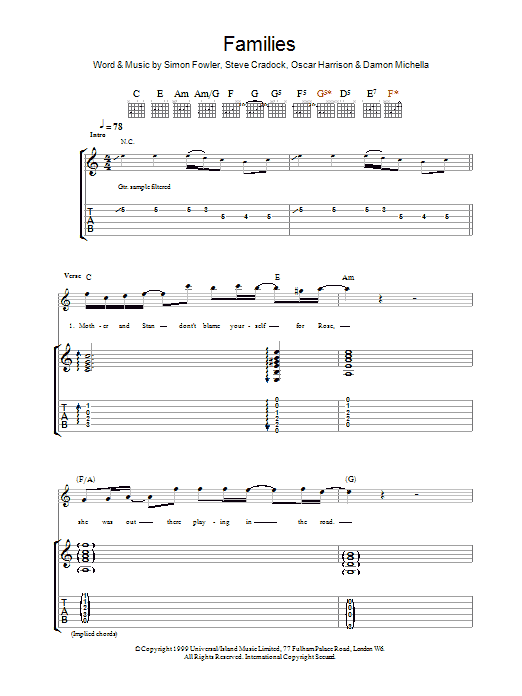 Download or print Ocean Colour Scene Families sheet music, chords and digital score arranged for Guitar Tab. This Rock score includes 8 page(s).