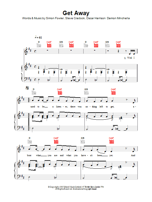 Download or print Ocean Colour Scene Get Away sheet music, chords and digital score arranged for Guitar Tab. This Rock score includes 15 page(s).