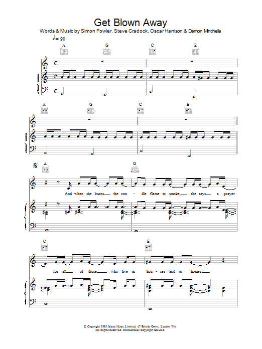 Download or print Ocean Colour Scene Get Blown Away sheet music, chords and digital score arranged for Piano, Vocal & Guitar Chords. This Rock score includes 4 page(s).