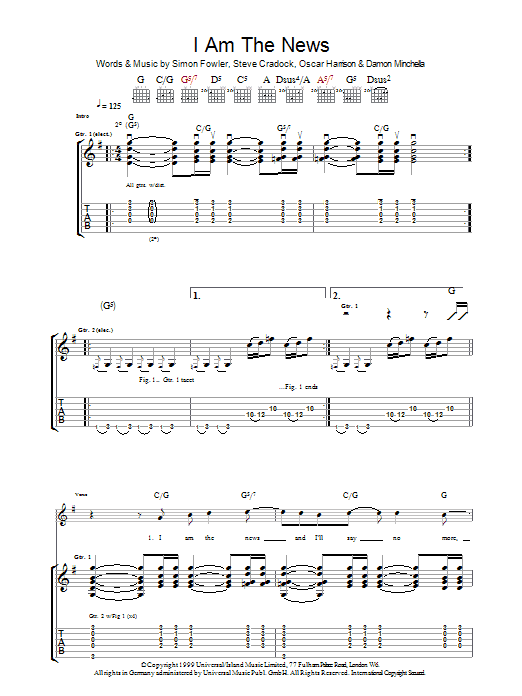 Download or print Ocean Colour Scene I Am The News sheet music, chords and digital score arranged for Guitar Tab. This Rock score includes 9 page(s).