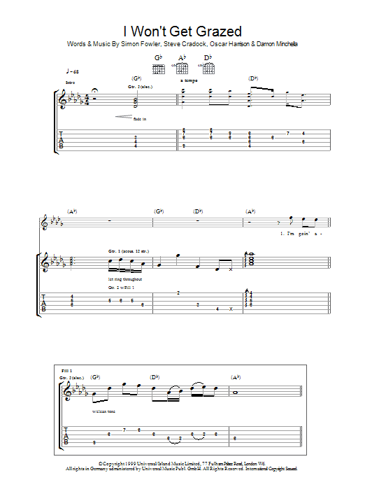 Download or print Ocean Colour Scene I Won't Get Grazed sheet music, chords and digital score arranged for Guitar Tab. This Rock score includes 7 page(s).