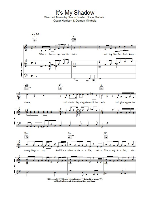 Download or print Ocean Colour Scene It's My Shadow sheet music, chords and digital score arranged for Piano, Vocal & Guitar Chords. This Rock score includes 7 page(s).