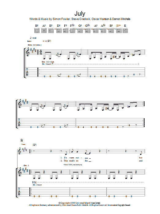 Download or print Ocean Colour Scene July sheet music, chords and digital score arranged for Guitar Tab. This Rock score includes 8 page(s).