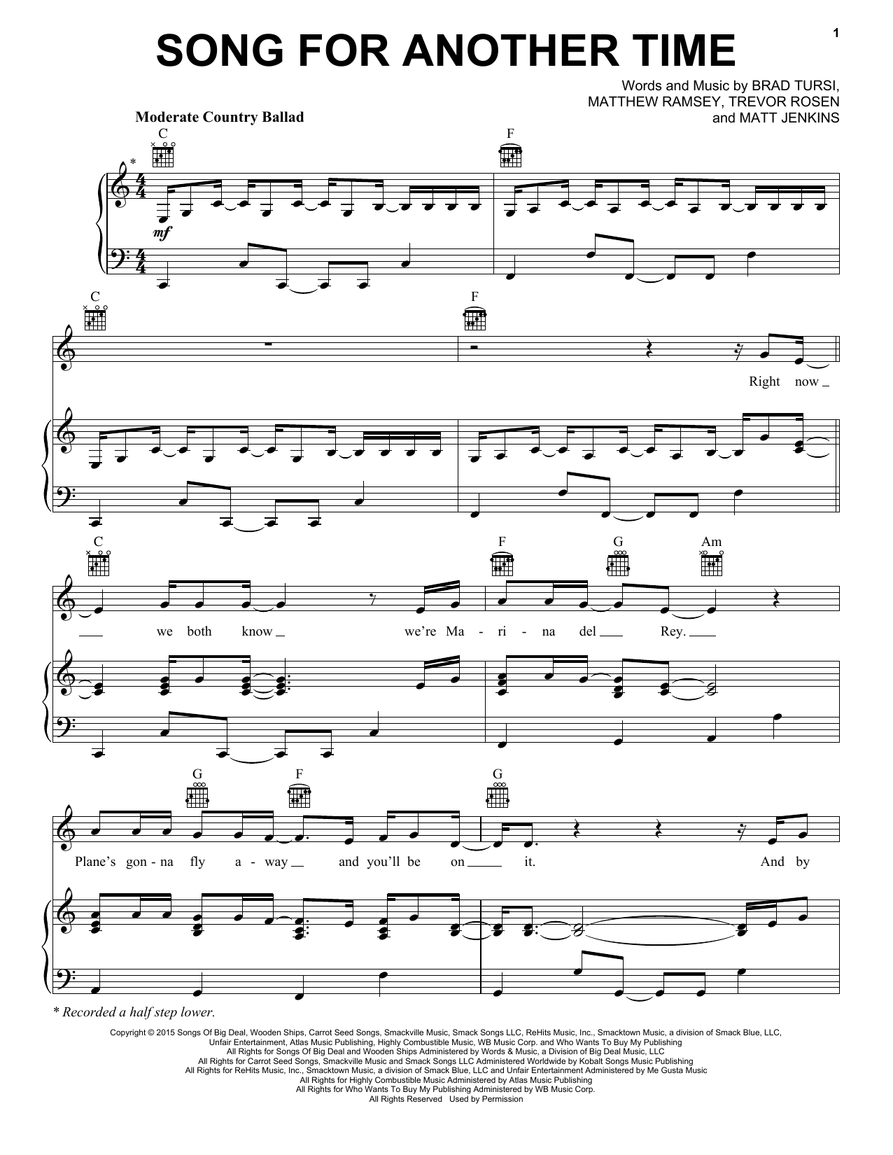 Download or print Old Dominion Song For Another Time sheet music, chords and digital score arranged for Piano, Vocal & Guitar Chords (Right-Hand Melody). This Country score includes 7 page(s).