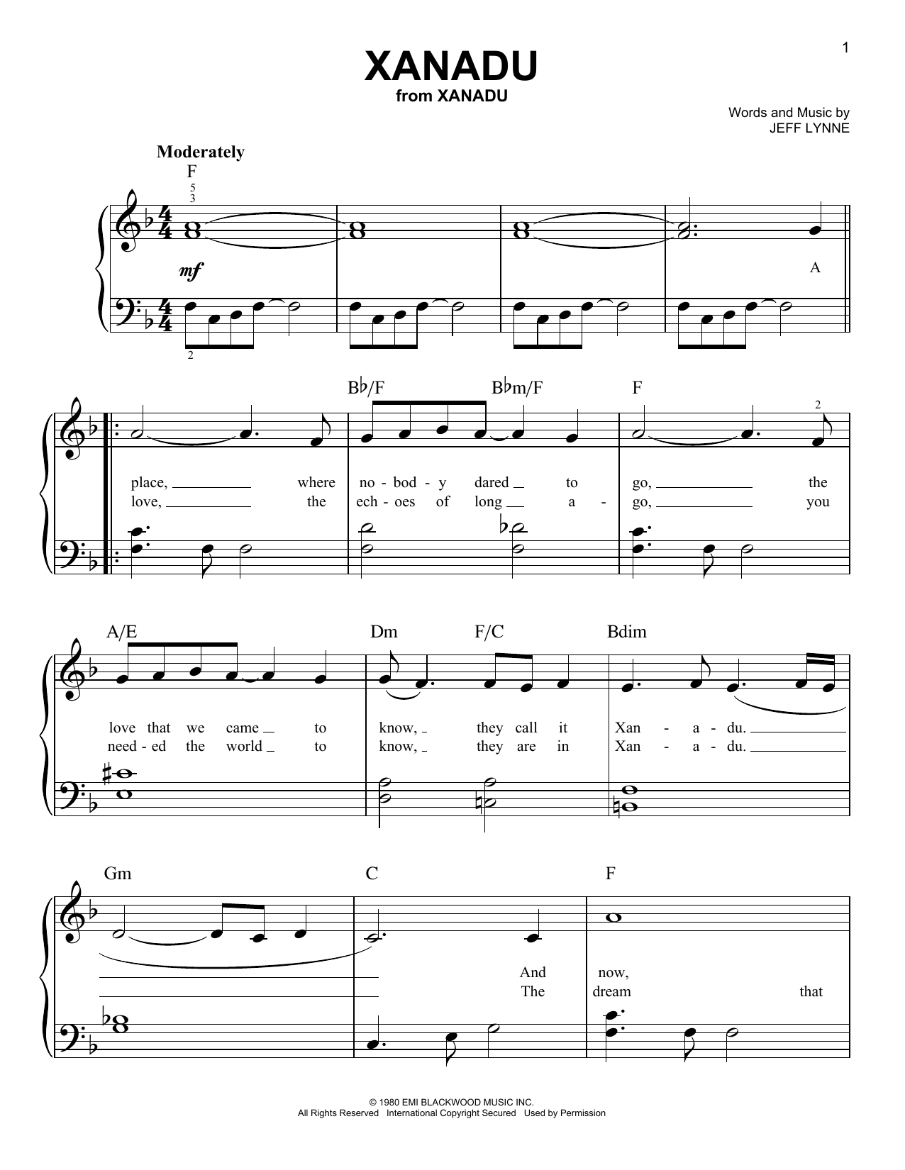Download or print Oliva Newton-John/Electric Light Orchestra Xanadu sheet music, chords and digital score arranged for Lead Sheet / Fake Book. This Pop score includes 1 page(s).