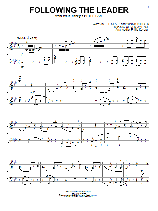 Quick facts Following The Leader [Classical version] (from Peter Pan) (arr. Phillip Keveren) about digital sheet music
