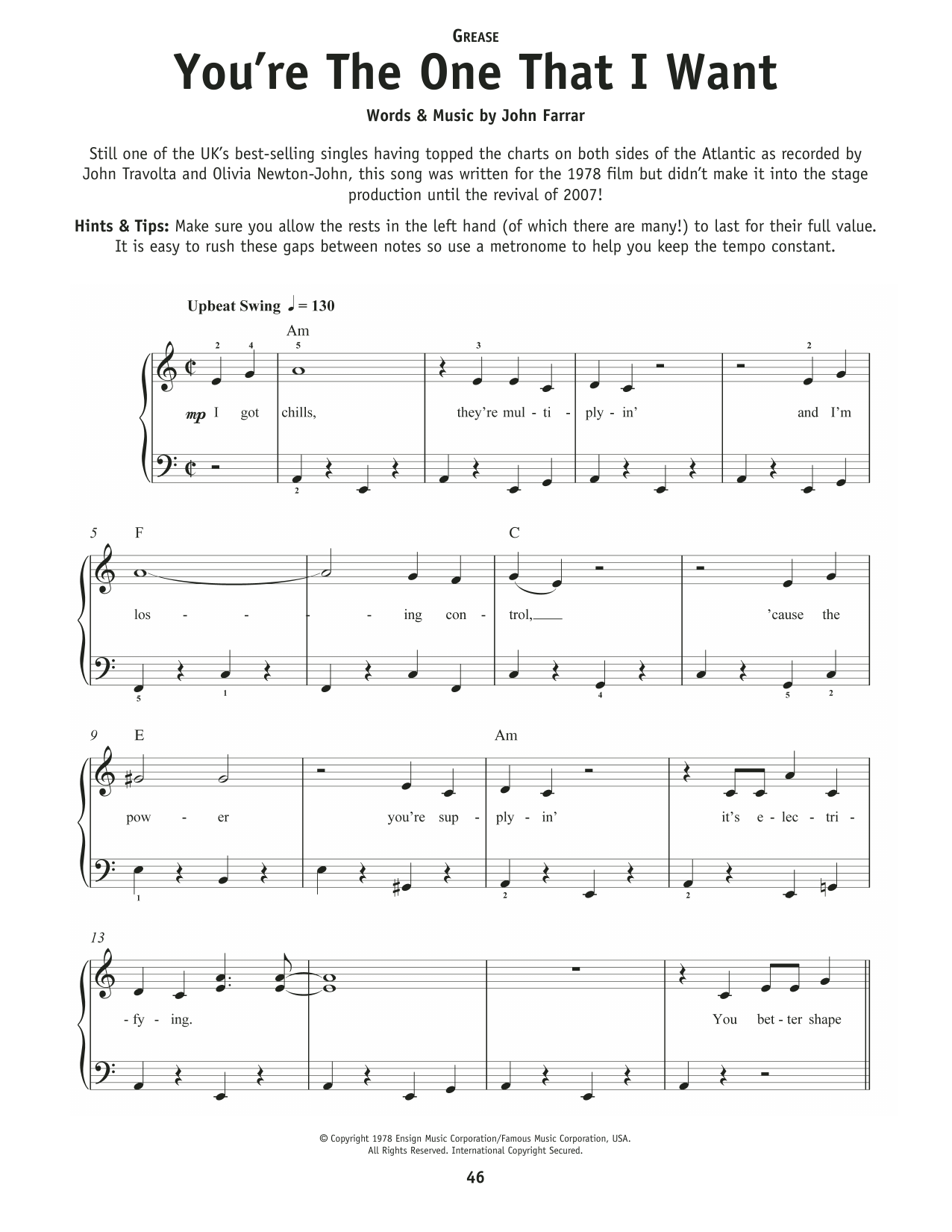 Download or print Olivia Newton-John and John Travolta You're The One That I Want (from Grease) sheet music, chords and digital score arranged for Really Easy Piano. This Pop score includes 3 page(s).