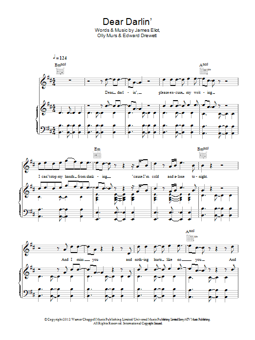 Download or print Olly Murs Dear Darlin' sheet music, chords and digital score arranged for Easy Piano. This Pop score includes 5 page(s).
