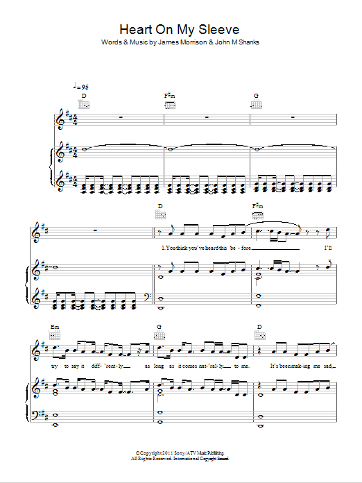 Download or print Olly Murs Heart On My Sleeve sheet music, chords and digital score arranged for Piano, Vocal & Guitar Chords. This Pop score includes 6 page(s).