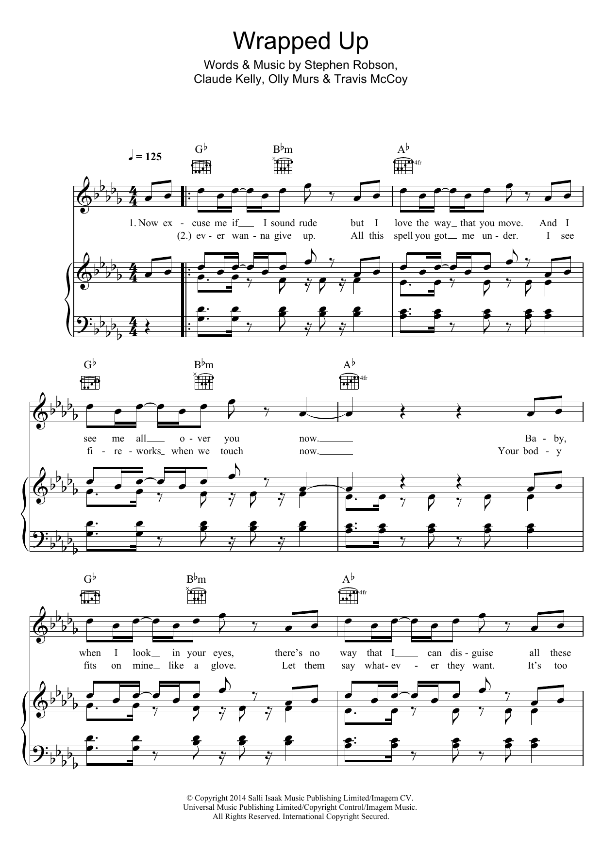 Download or print Olly Murs Wrapped Up sheet music, chords and digital score arranged for Piano, Vocal & Guitar Chords. This Hip-Hop score includes 7 page(s).
