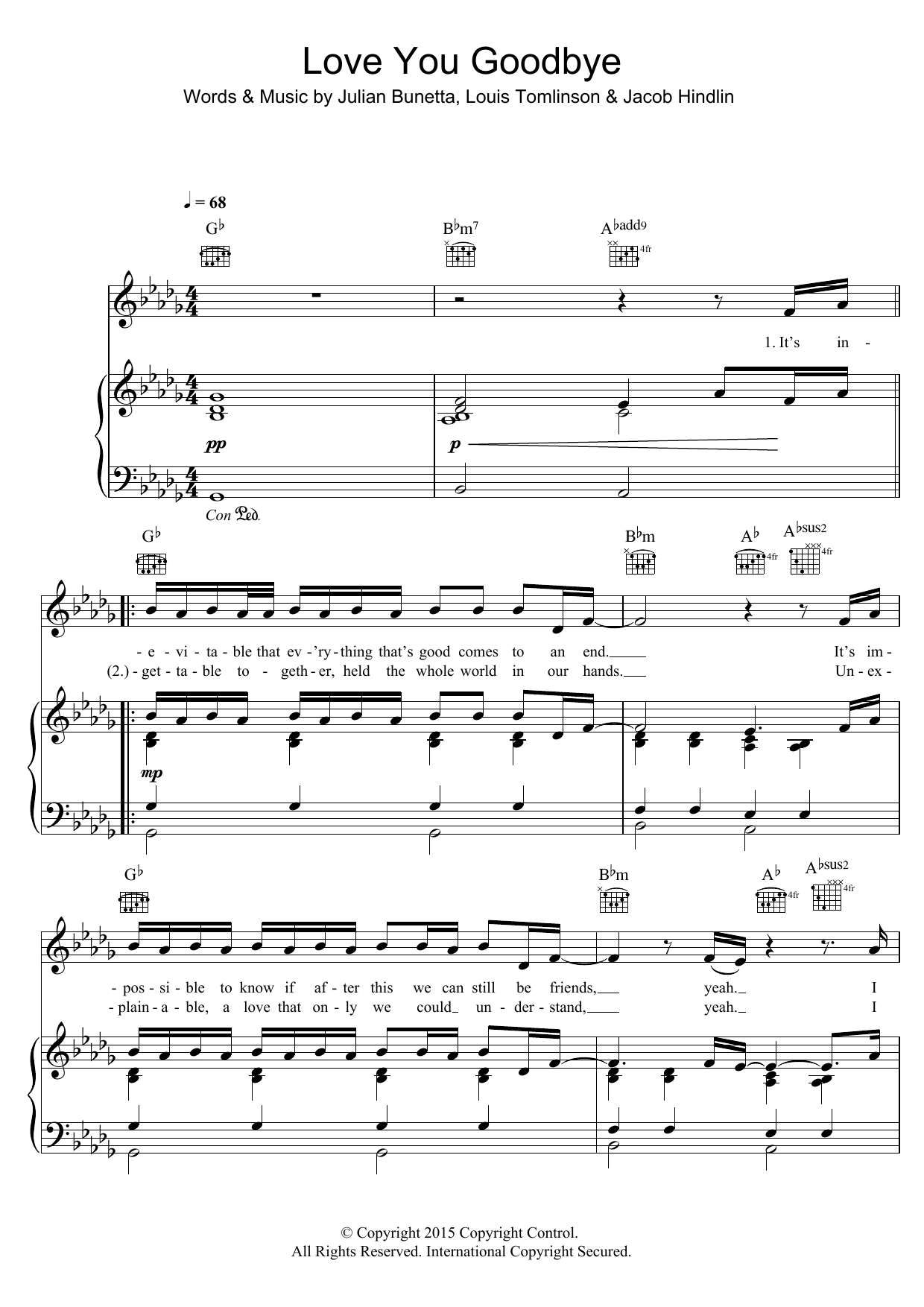 Download or print One Direction Love You Goodbye sheet music, chords and digital score arranged for Piano, Vocal & Guitar Chords (Right-Hand Melody). This Pop score includes 5 page(s).
