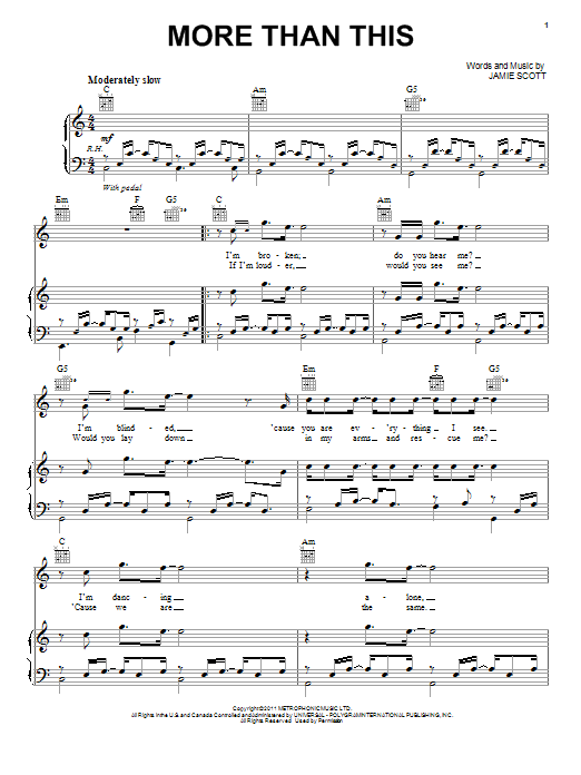 Download or print One Direction More Than This sheet music, chords and digital score arranged for Easy Piano. This Pop score includes 4 page(s).