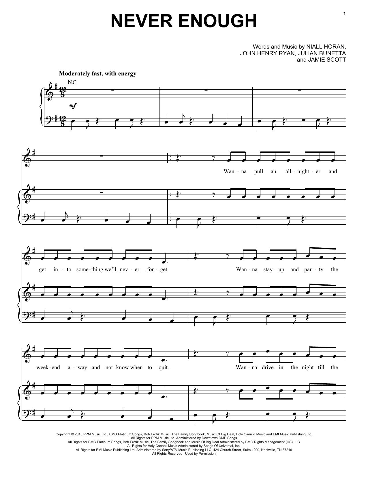 Download or print One Direction Never Enough sheet music, chords and digital score arranged for Easy Piano. This Pop score includes 6 page(s).