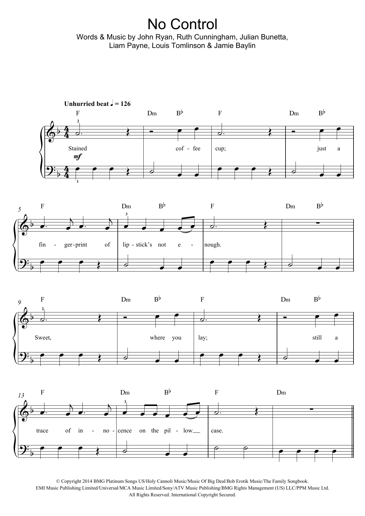 Download or print One Direction No Control sheet music, chords and digital score arranged for Piano, Vocal & Guitar Chords (Right-Hand Melody). This Pop score includes 7 page(s).