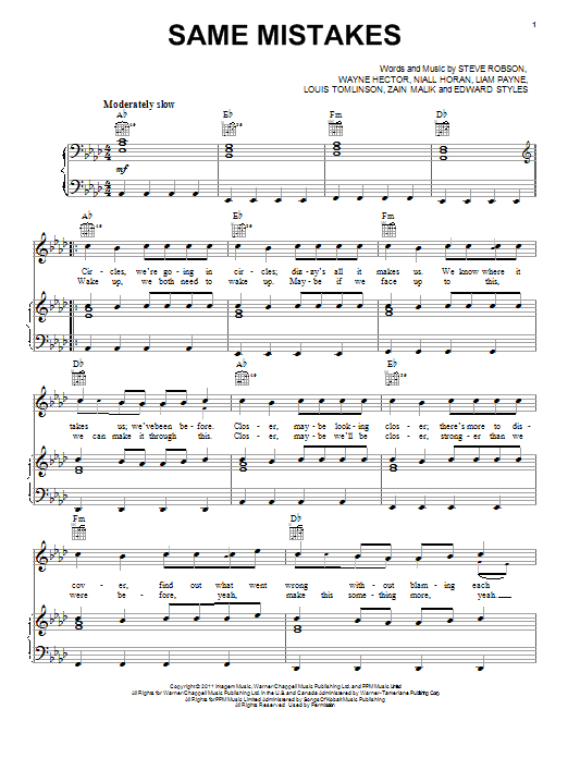 Download or print One Direction Same Mistakes sheet music, chords and digital score arranged for Easy Piano. This Pop score includes 4 page(s).