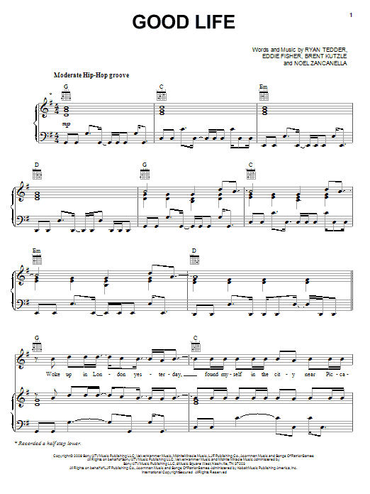 Download or print OneRepublic Good Life sheet music, chords and digital score arranged for Easy Guitar Tab. This Pop score includes 5 page(s).
