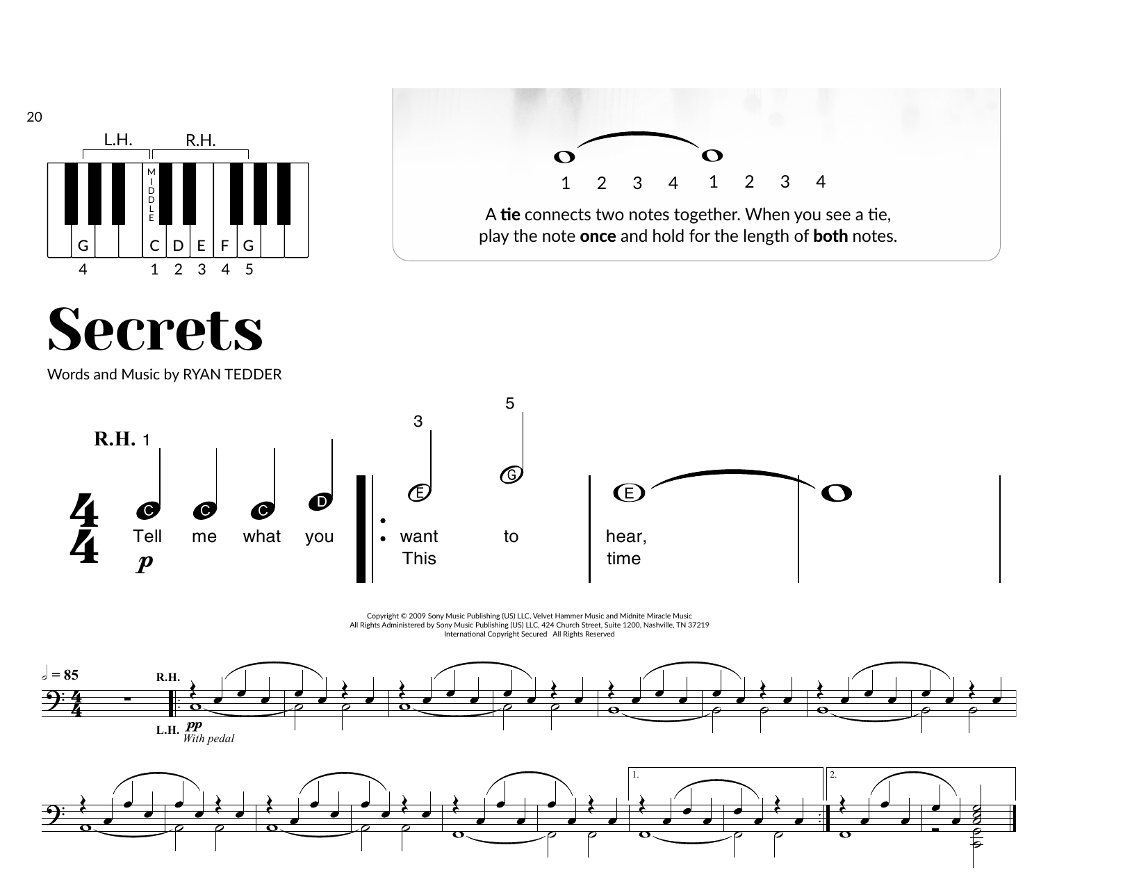 Download or print OneRepublic Secrets (arr. Brittany McCorriston) sheet music, chords and digital score arranged for Very Beginner Piano. This Pop score includes 2 page(s).