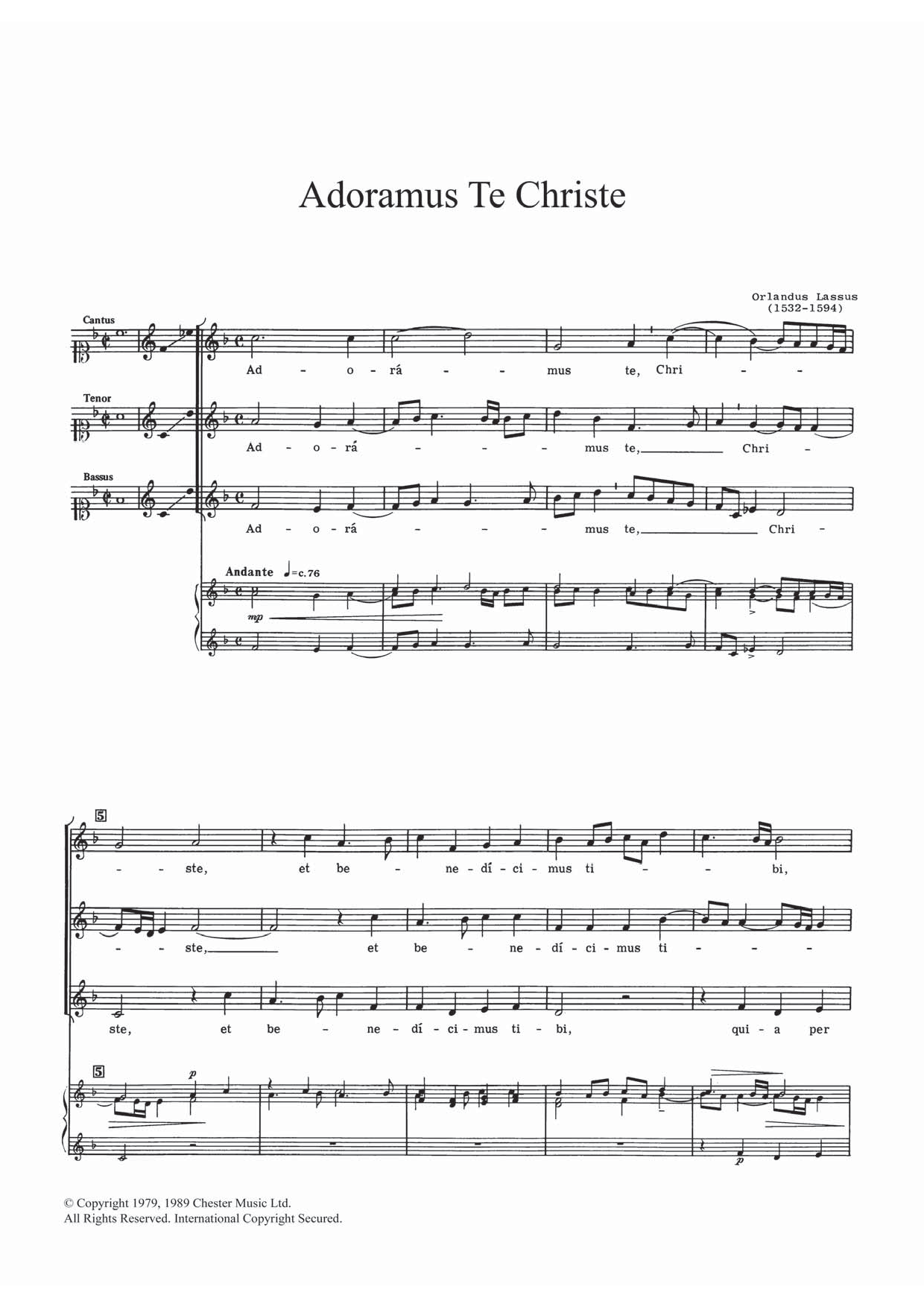 Download or print Orlandus Lassus Adoramus Te Christe sheet music, chords and digital score arranged for SATB Choir. This Inspirational score includes 2 page(s).