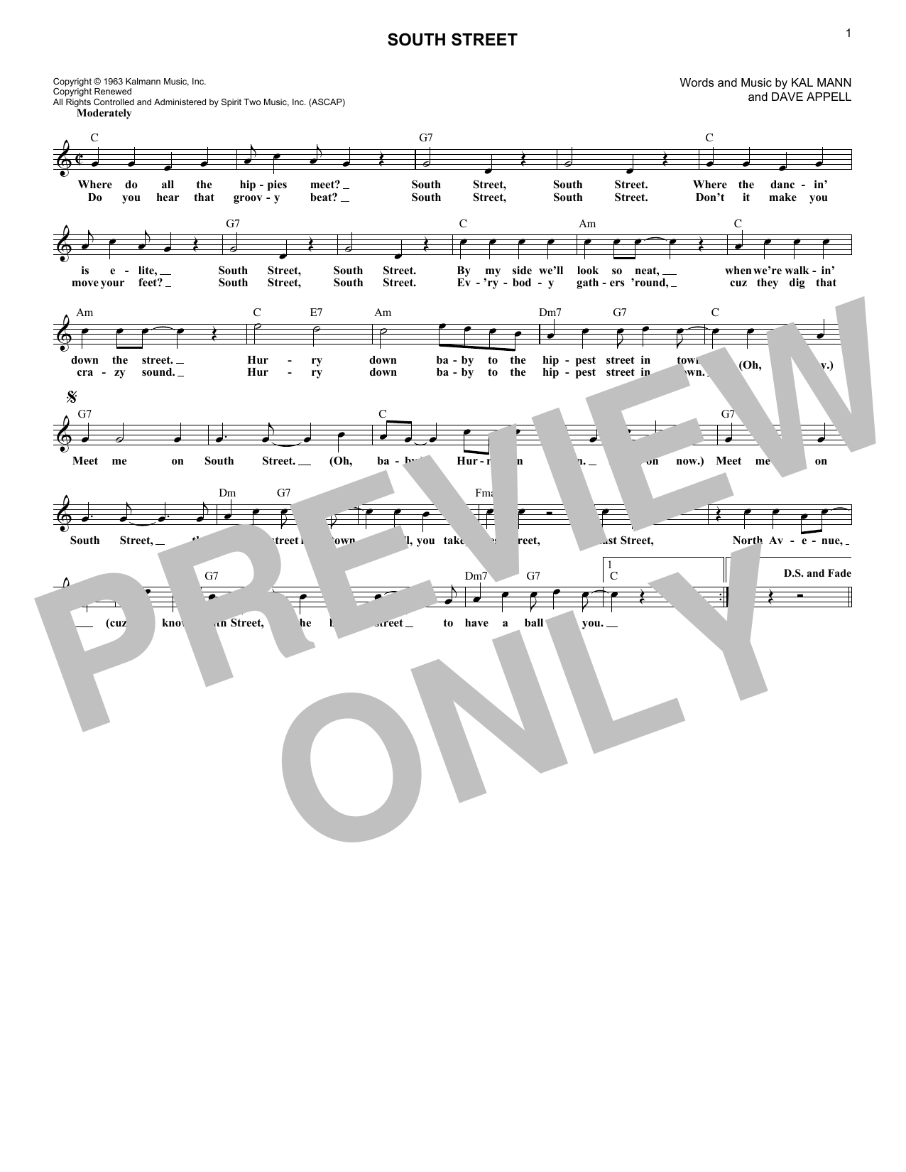 Download or print Orlons South Street sheet music, chords and digital score arranged for Lead Sheet / Fake Book. This Pop score includes 1 page(s).