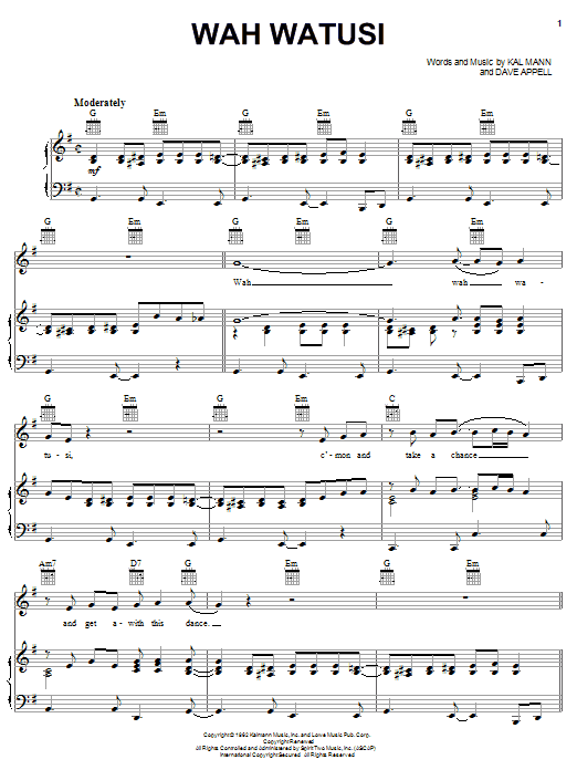 Download or print Orlons Wah Watusi sheet music, chords and digital score arranged for Lead Sheet / Fake Book. This Pop score includes 1 page(s).