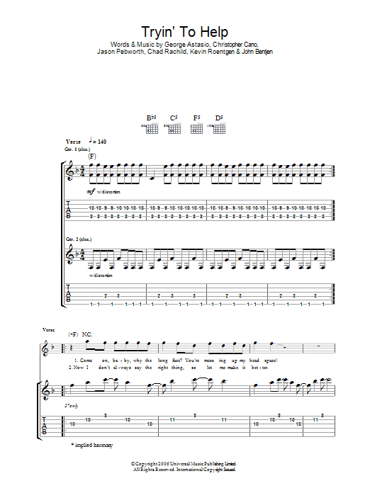 Download or print Orson Tryin' To Help sheet music, chords and digital score arranged for Guitar Tab. This Rock score includes 9 page(s).