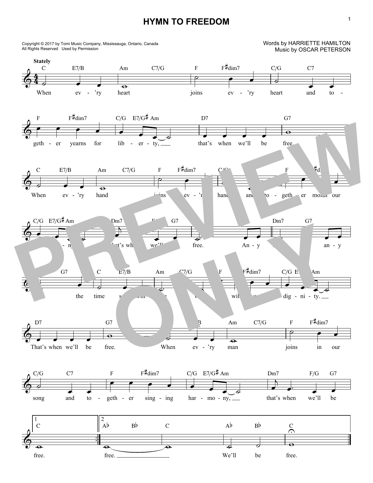 Download or print Oscar Peterson Hymn To Freedom sheet music, chords and digital score arranged for Lead Sheet / Fake Book. This Patriotic score includes 1 page(s).