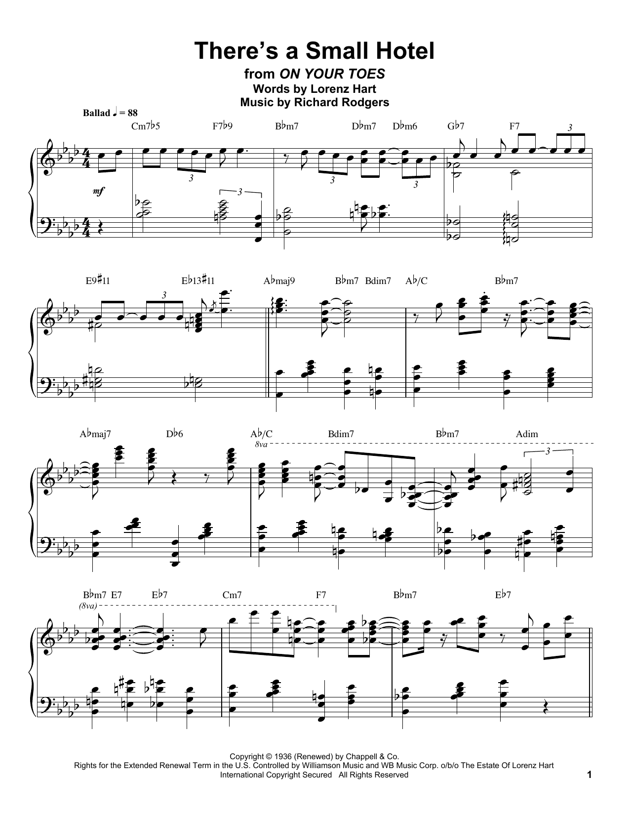 Quick facts There's A Small Hotel about digital sheet music
