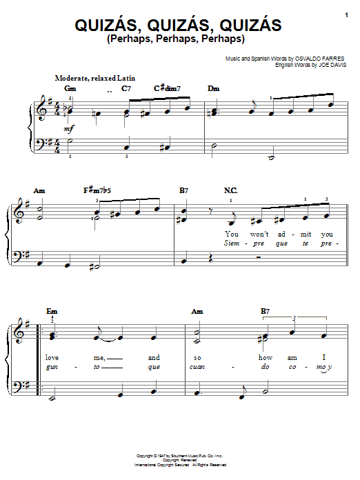 Quick facts Quizas, Quizas, Quizas (Perhaps, Perhaps, Perhaps) about digital sheet music