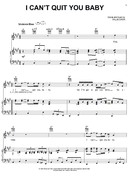 Quick facts I Can't Quit You Baby about digital sheet music
