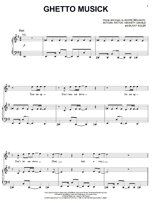 Download or print OutKast Ghetto Musick sheet music, chords and digital score arranged for Piano, Vocal & Guitar Chords (Right-Hand Melody). This Hip-Hop score includes 7 page(s).