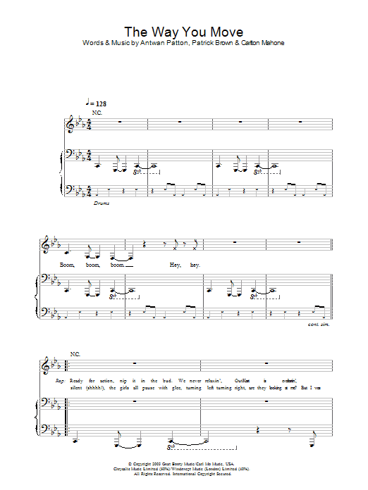 Download or print OutKast The Way You Move sheet music, chords and digital score arranged for Lead Sheet / Fake Book. This Pop score includes 3 page(s).
