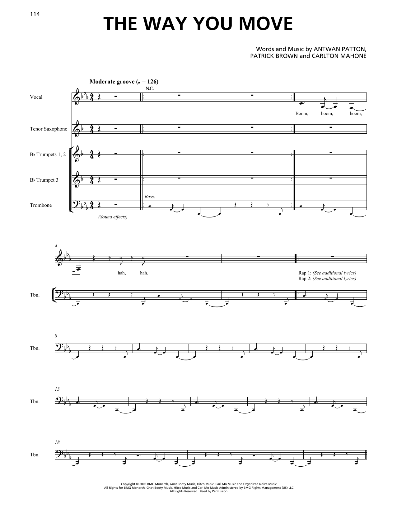 Download or print OutKast The Way You Move (feat. Sleepy Brown) (Horn Section) sheet music, chords and digital score arranged for Transcribed Score. This Pop score includes 5 page(s).