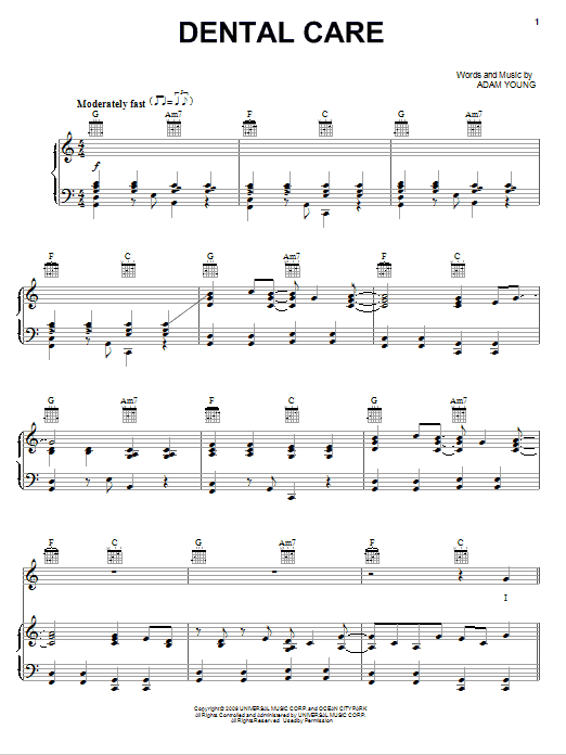 Download or print Owl City Dental Care sheet music, chords and digital score arranged for Easy Piano. This Rock score includes 6 page(s).