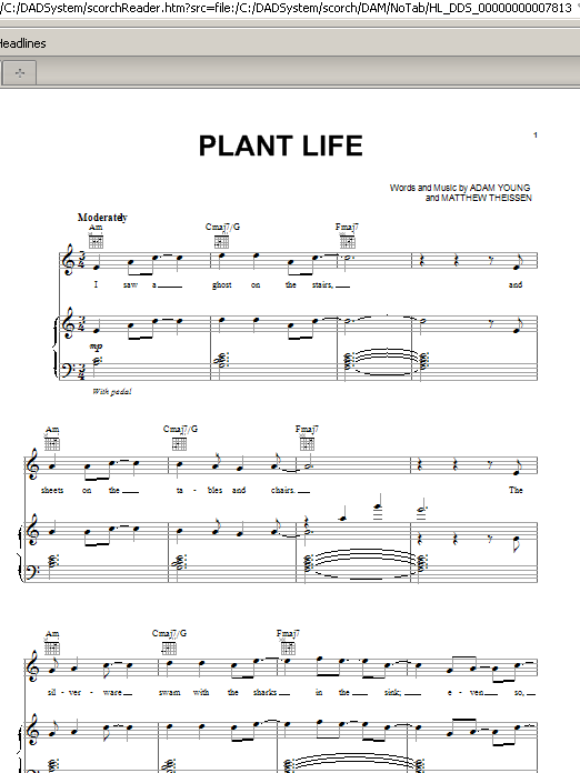 Download or print Owl City Plant Life sheet music, chords and digital score arranged for Piano, Vocal & Guitar Chords (Right-Hand Melody). This Pop score includes 12 page(s).