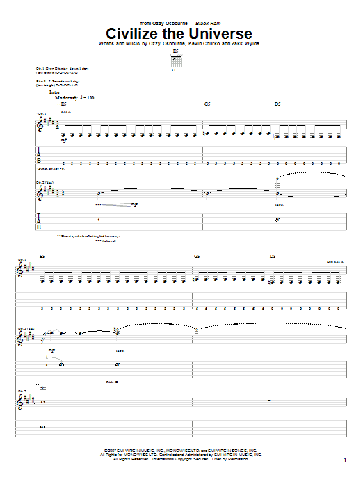 Download or print Ozzy Osbourne Civilize The Universe sheet music, chords and digital score arranged for Guitar Tab. This Metal score includes 12 page(s).