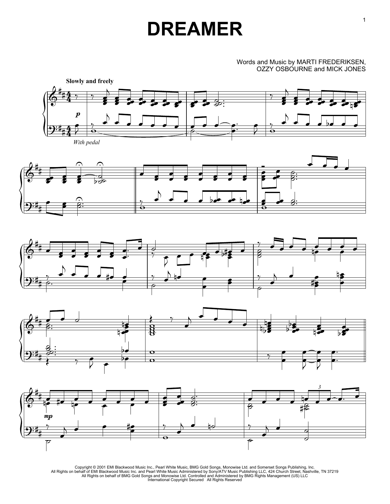 Download or print Ozzy Osbourne Dreamer [Jazz version] sheet music, chords and digital score arranged for Piano Solo. This Jazz score includes 4 page(s).